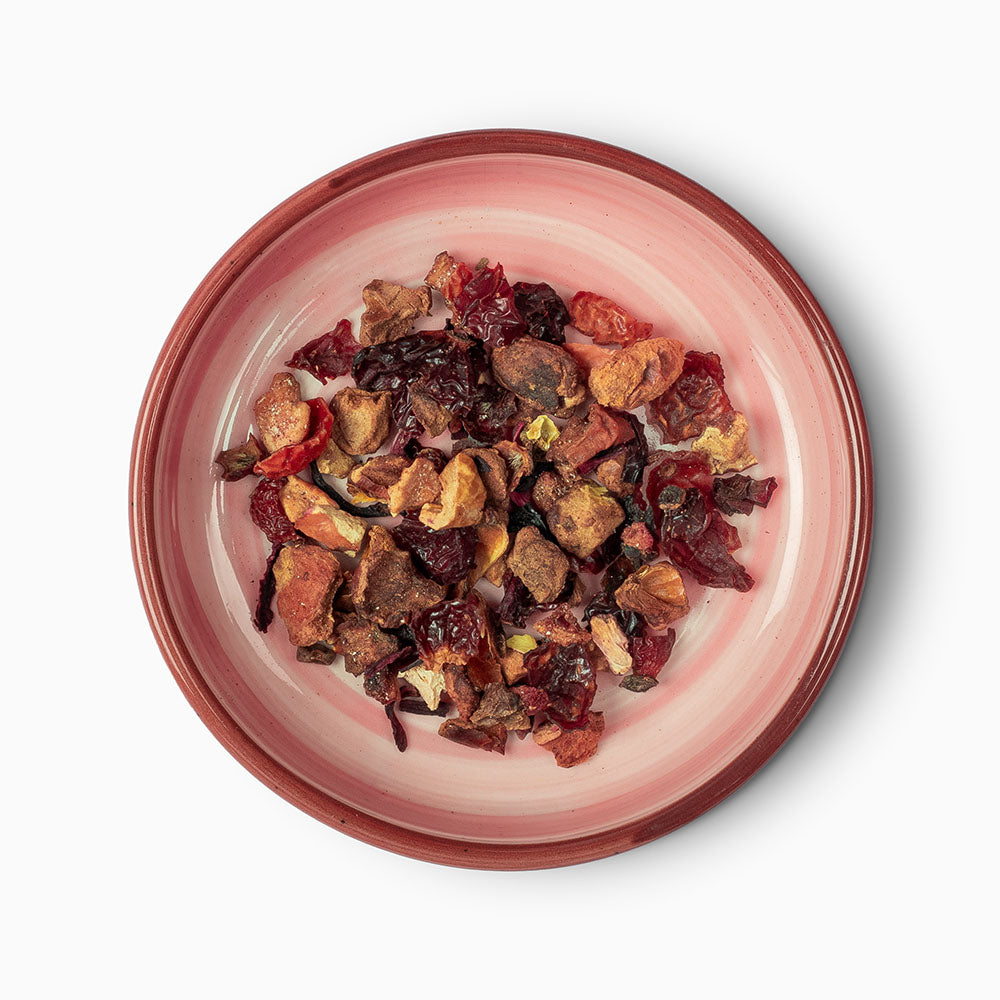 Una mezcla de fresa, kiwi, manzana e hibisco.