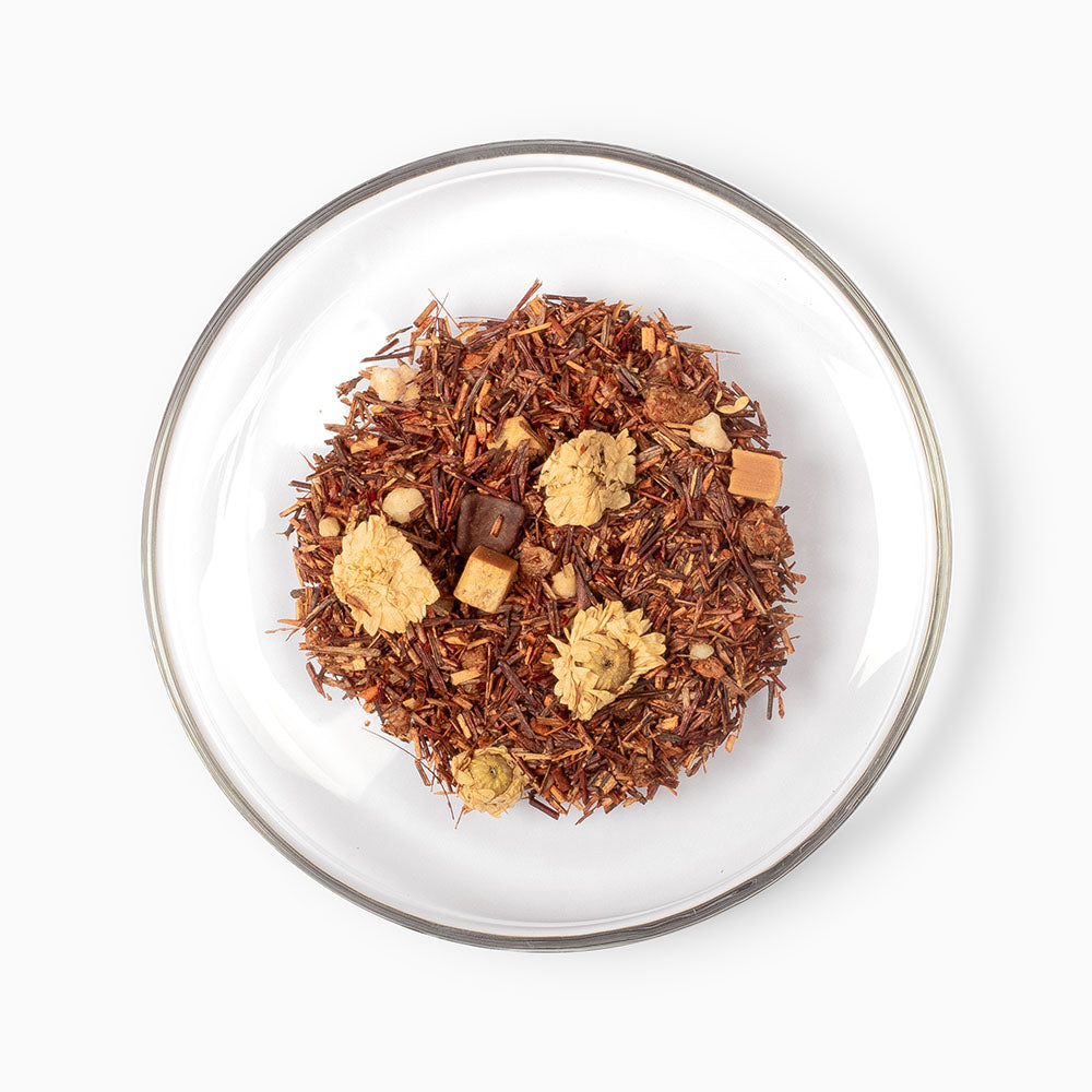 Mezcla de rooibos con caramelo, granos de café, chocolate y yogurth.